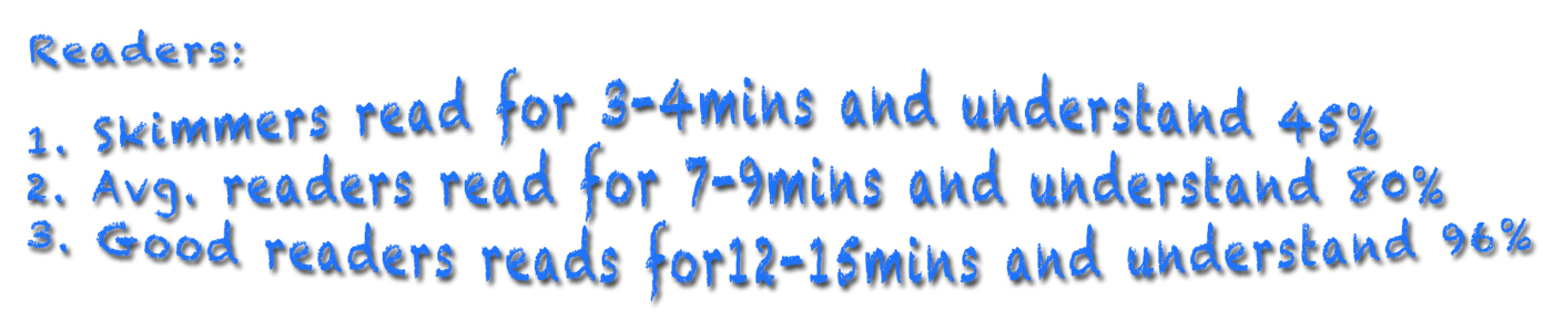 When ever you see a new and interesting titled article, you start reading it with much interest and willingness but as you gradually start understanding the content you think you are done and start feeling bored. Then suddenly your facebook wall seems more interesting to you and you convince yourself that you've understood the article (This happens a lot for me :p), we tend to stop reading that and assume we understood what the poor author tries to convey. Yes! you'd have actually understood it but this causes some huge set backs for our parameters.